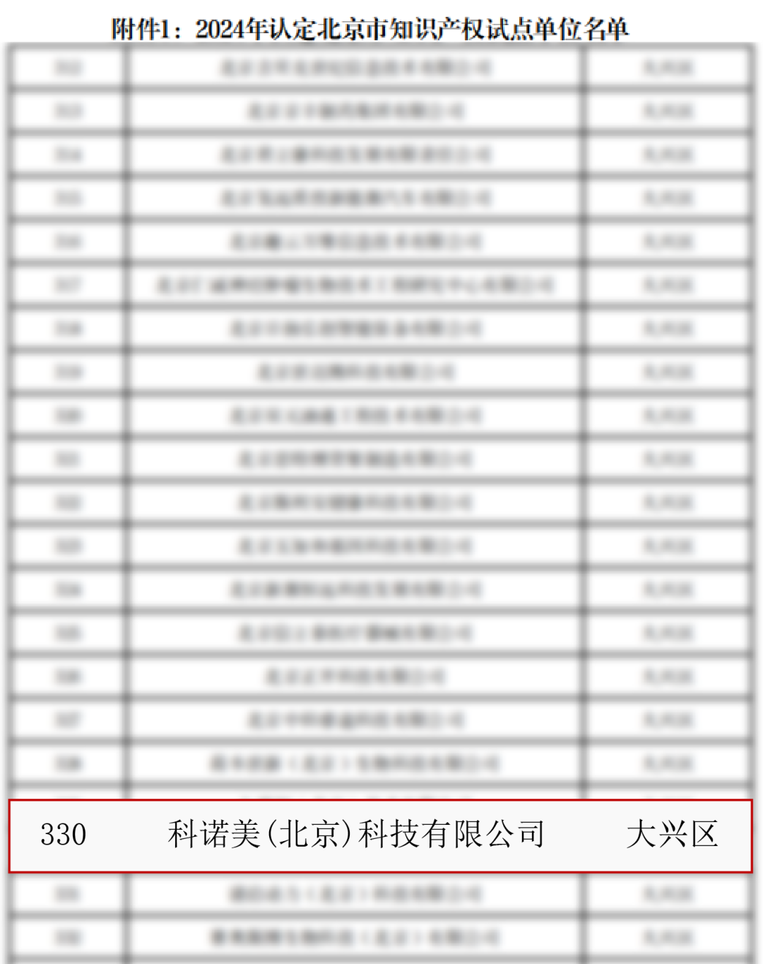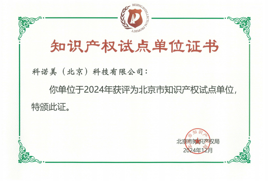 喜报!科诺美荣获2024年“北京市知识产权试点单位”